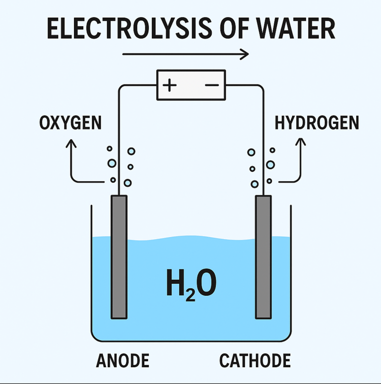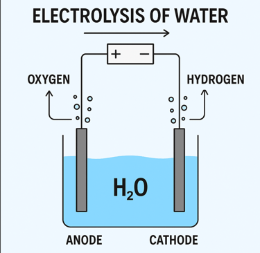 2H₂O → 2H₂ (hydrogen gas) + O₂ (oxygen gas)